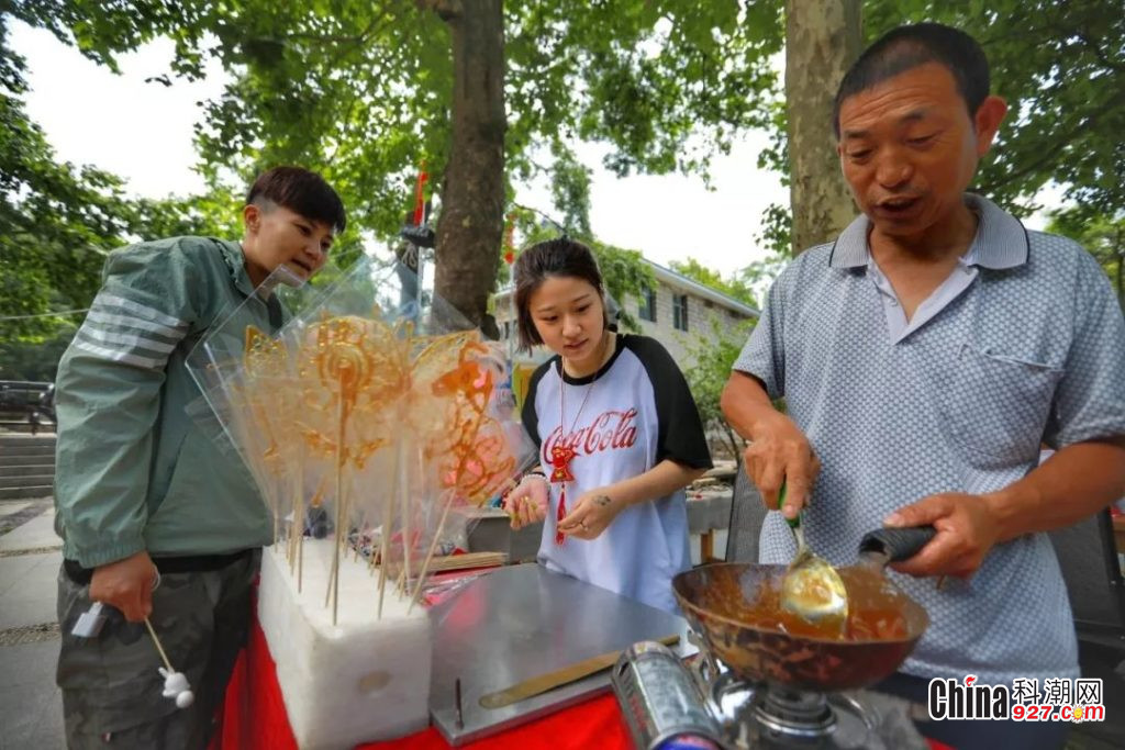 捏面人、做糖画、泥叫吹等非遗绝活展示内容多样,现场气氛热烈,引起游客浓厚的兴趣,大家积极围观并询问制作细节。