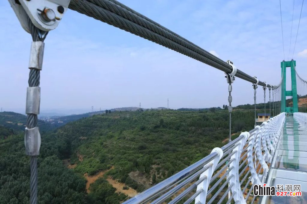 相府庄园玻璃天桥全长368米,桥宽2.5米,垂直落差118米