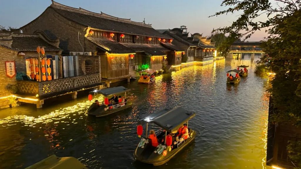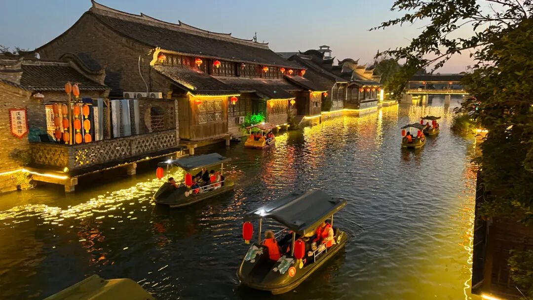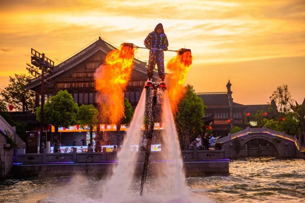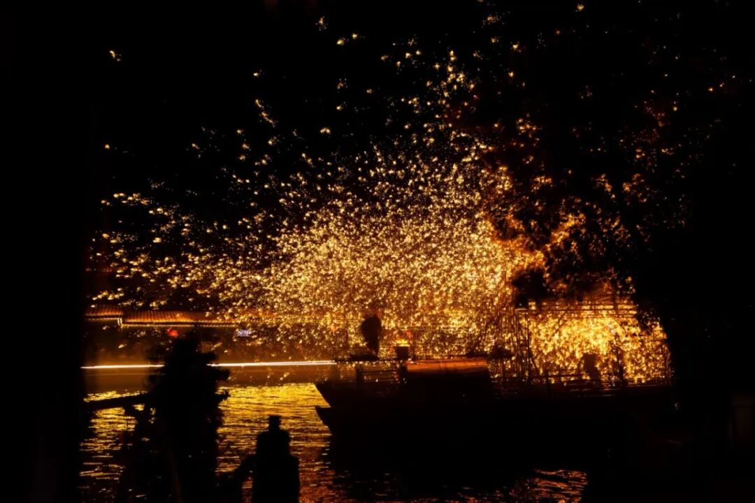 白天解锁非遗手作, 把千年技艺装进行囊。 必体验文化清单 • 朱仙镇木版年画:以刀为笔,以木为纸,刻下千年民俗的温度,带走 “年画鼻祖” 的千年祝福。 • 漆扇绘制:用大漆工艺描一幅汴绣纹样,让东方美学伴你返程。 • 铜板浮雕:当金属的冷硬遇上匠心的温度,便有了铜板浮雕的惊艳登场。 • 活字印刷:从选字、排版到拓印,亲手复刻文明,让历史在指尖 “活” 起来。 夜游才是精髓! 打铁花与电音撞出千年浪漫! 当聚仙湖的灯笼次第亮起,白天的古镇瞬间切换成不夜城: • 非遗打铁花:千年绝技打铁花,万点星火映夜空,看铁水泼洒成璀璨星河,解锁极致视觉震撼。 • 水上火壶秀:烈焰与水花共舞,非遗技艺在夜色中惊艳绽放。 • 篝火电音派对:围着篝火跳一支民俗舞,让国风旋律点燃夜空。 • 漕运夜景漫游:乘画舫穿越聚仙湖,看灯笼倒影在水面铺成金色长廊。 当汉服遇见这里, 才懂什么是双向奔赴。 这里没有人头攒动的拥挤, 却有“街街有历史,景景有故事” 的厚重。 白天扎毛笔、看豫剧,夜晚看火树银花、乘画舫… 这个国庆,让千年宋韵住进你的假期里。