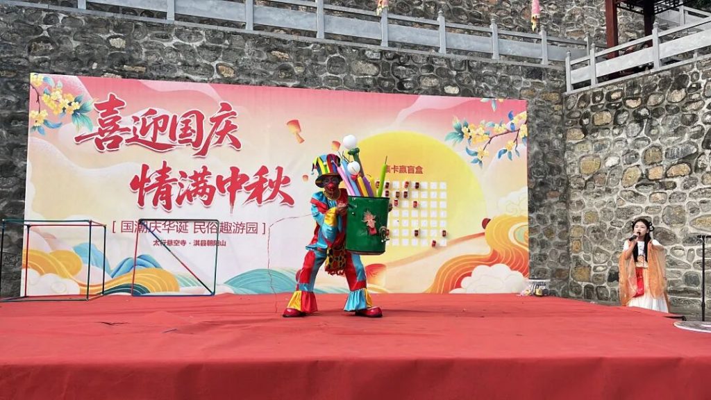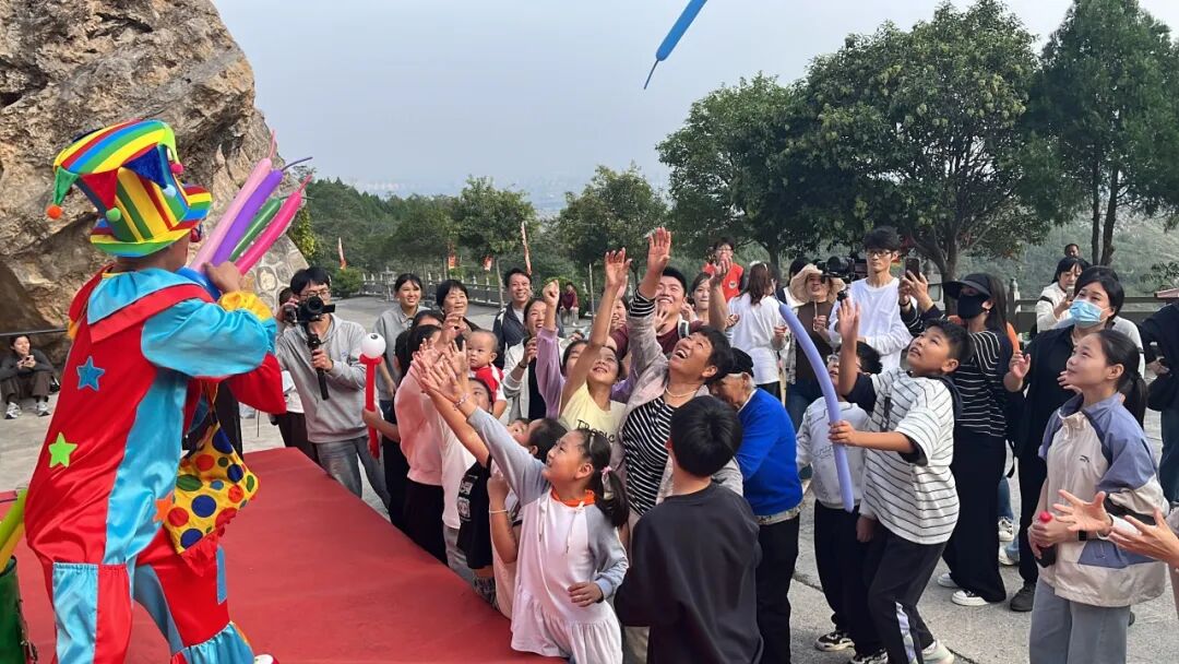 秋风捎来热闹的讯号,今日的朝阳山彻底化身欢乐海洋!小丑的气球在阳光下跳跃,魔术的奥秘引发现场惊呼,川剧变脸的惊艳瞬间刷屏镜头,NPC与游客的趣味互动笑声不断,再加上人气爆棚的游园集章,每一处都藏着让人挪不开脚的惊喜。