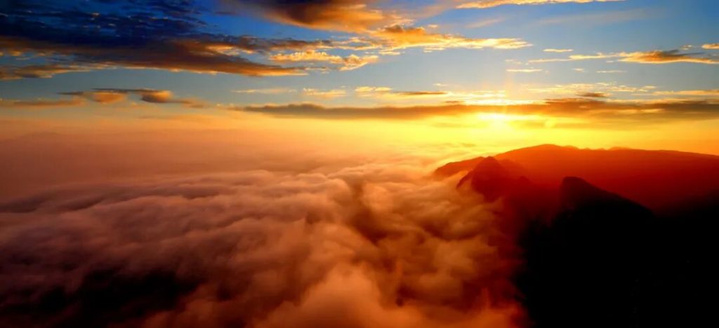 云海秋色,交相辉映:秋季是观赏云海的佳期,当磅礴的云海掠过斑斓的山脊,红日在云层间若隐若现,此情此景,堪称绝境。