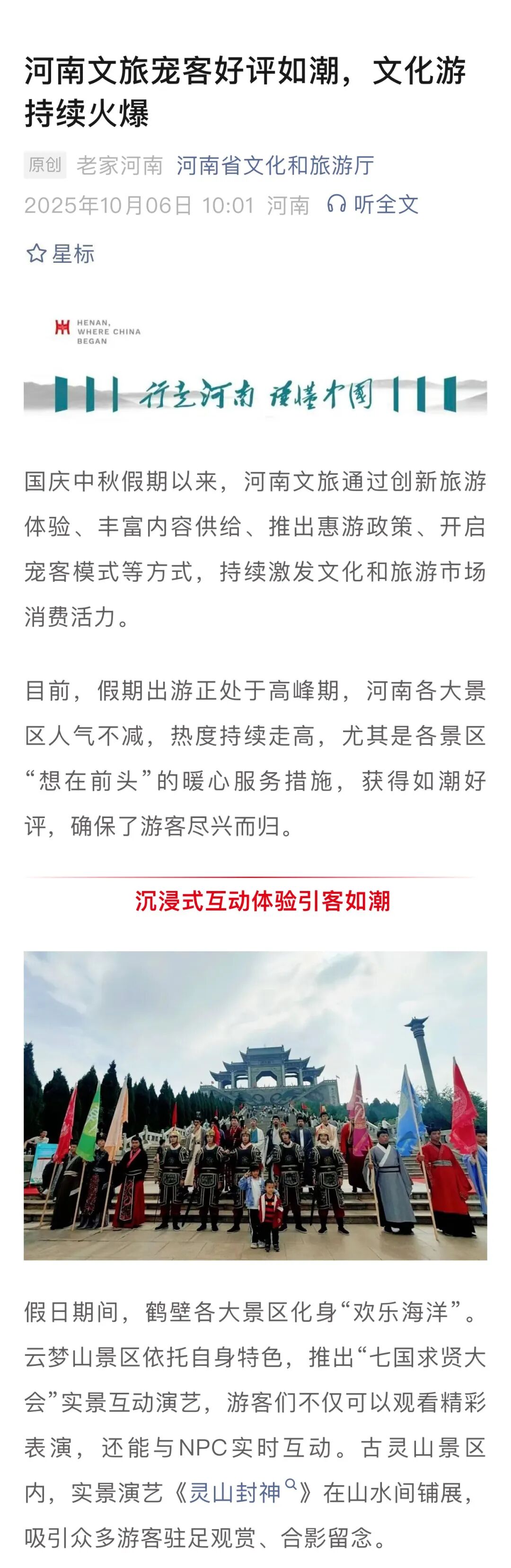 正是这份“硬核”活动与“暖心”服务的双重保障,共同铸就了淇县文旅国庆假期的口碑与辉煌,赢得了省文旅厅的两日两赞!