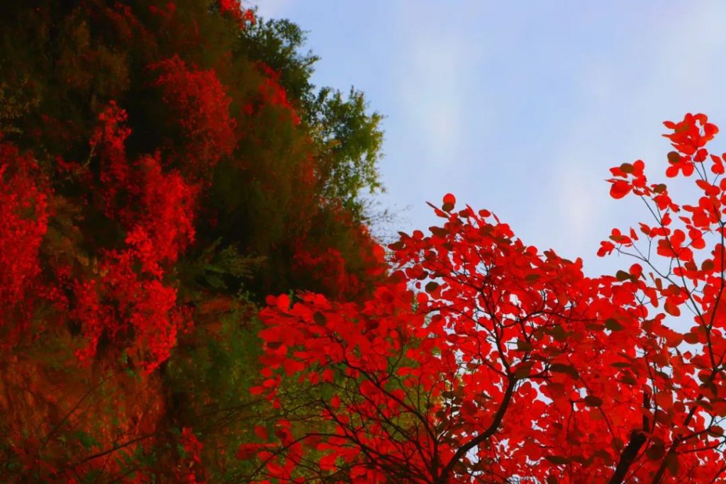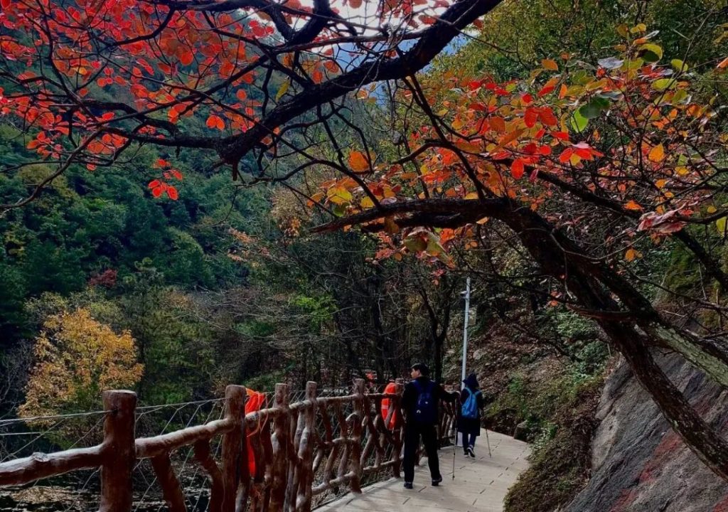 黄栌柴 黄栌柴是老君山红叶的”主力军”,叶片倒卵形,初秋叶色由绿转黄,继而变为火红、深红,密集的树冠如燃烧的火炬,远观似赤色波涛席卷山谷。 作为香山红叶的”同款主角”,黄栌柴在老君山海拔1500米以上的原始林区成片生长,与桦栎、青岗等古树交织,形成”古林秀色”的奇观。 漆树 漆树多见于海拔1000-1600米的山谷溪边,与青檀、核桃楸等落叶乔木共生,树干皮层粗糙如老树皮画,割开后渗出的汁液曾是古人制漆的原料,红叶时节,整株树仿佛一座天然的”漆器工坊”,将千年匠心凝于叶脉。 槭树 槭树散布于海拔1300-2000米的混交林带,尤以追梦谷、十里画屏步道两侧最为密集,成为老君山最灵动的秋色精灵。 温馨提示 红叶最佳观赏期:10月中旬至11月初,老君山红叶进入色彩巅峰期,漫山遍野飞红流丹,与金顶的琉璃瓦、云海的缥缈白构成绝美画卷。 “十月老君山,一步一画卷 你准备好,让红叶铺满你的朋友圈了吗?”