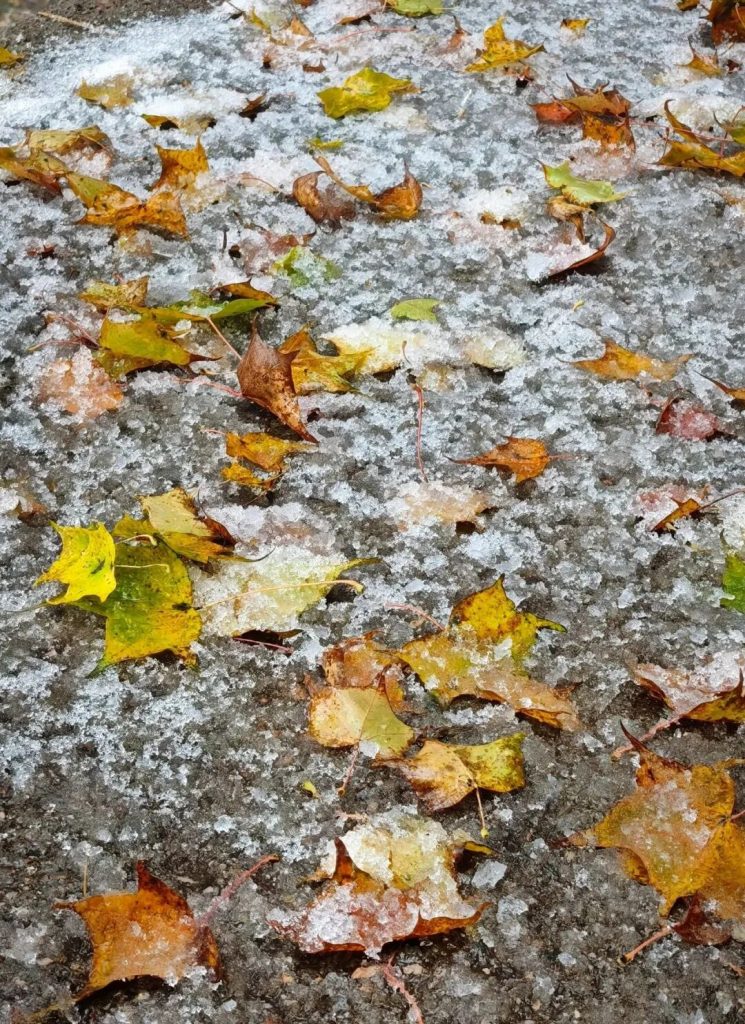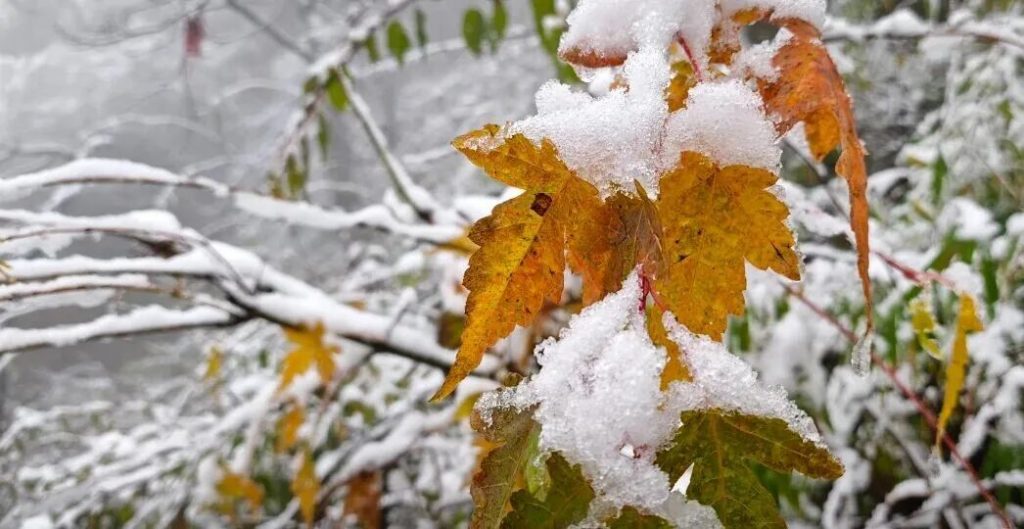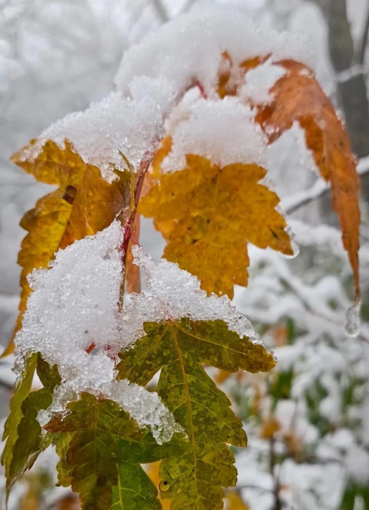 冰雪与秋色尚未完全交替,构成了这个季节独有的风景线。