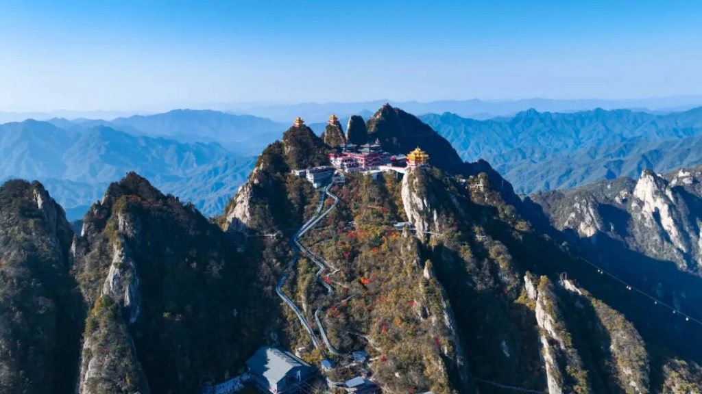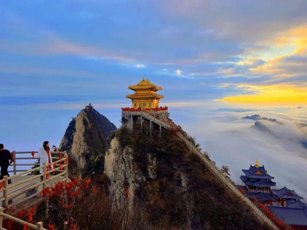 今天的老君山, 迎来了一场与阳光的盛大重逢。 湛蓝的天空铺开画卷, 被秋雨洗涤过的群山正酝酿着层层叠叠的斑斓, 金殿在阳光下闪耀着万道金光, 这一刻,所有的等待都值得! 秋风为笔,时光为墨。 山间的色彩开始变得丰富起来, 银杏的黄、枫树的红、松柏的绿…… 它们交织成一幅巨大的油画。 每一步,都是穿行在风景里。 秋天的阳光, 拥有最恰当的温度与角度。 它柔和地倾泻下来, 让金殿的每一片琉璃瓦都仿佛被唤醒, 折射出深邃而温暖的光泽, 与秋日特有的蓝天构成绝佳CP。 这场期待已久的晴空万里 这片沁人心脾的清新空气 这座在蓝天白云映衬下格外壮丽的仙山 都在向你发出美丽的邀请 快来老君山 邂逅这片久违的蓝天 收藏这份难得的晴朗 我们在阳光灿烂处 等你共赴这场秋日暖阳之约