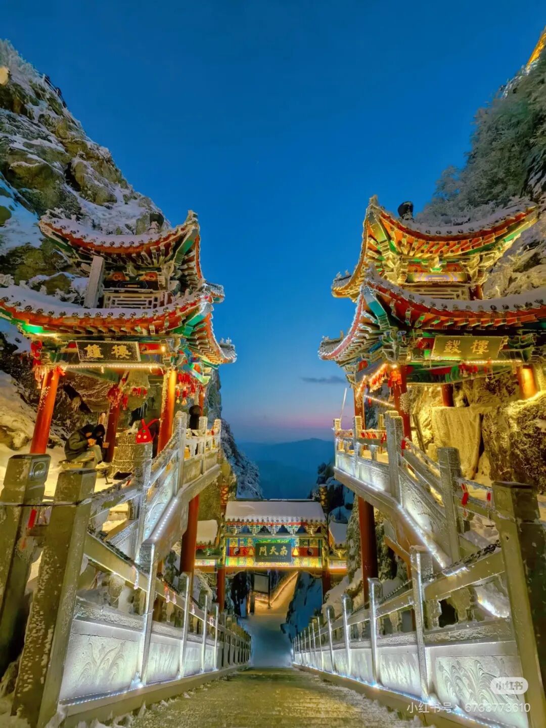 初雪的“邀请函” 随着气温降低,11月下旬的老君山将飘起雪。当薄雪覆盖金顶道观群的青瓦,红墙与白雪相映,云海在脚下翻涌时,整座山仿佛变成了“云中天宫”。