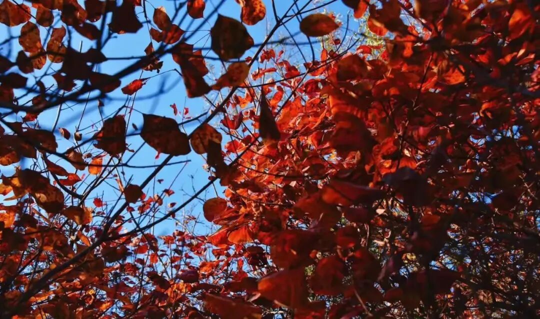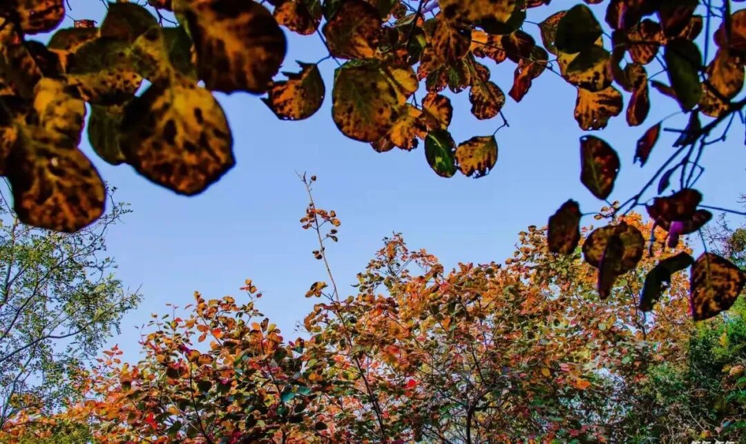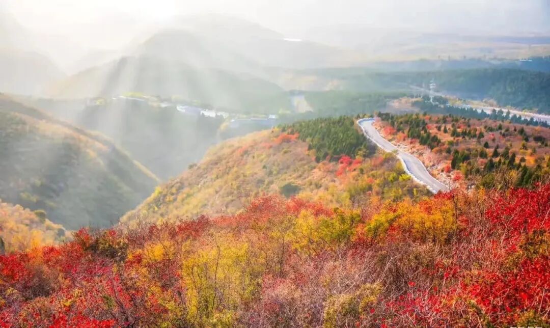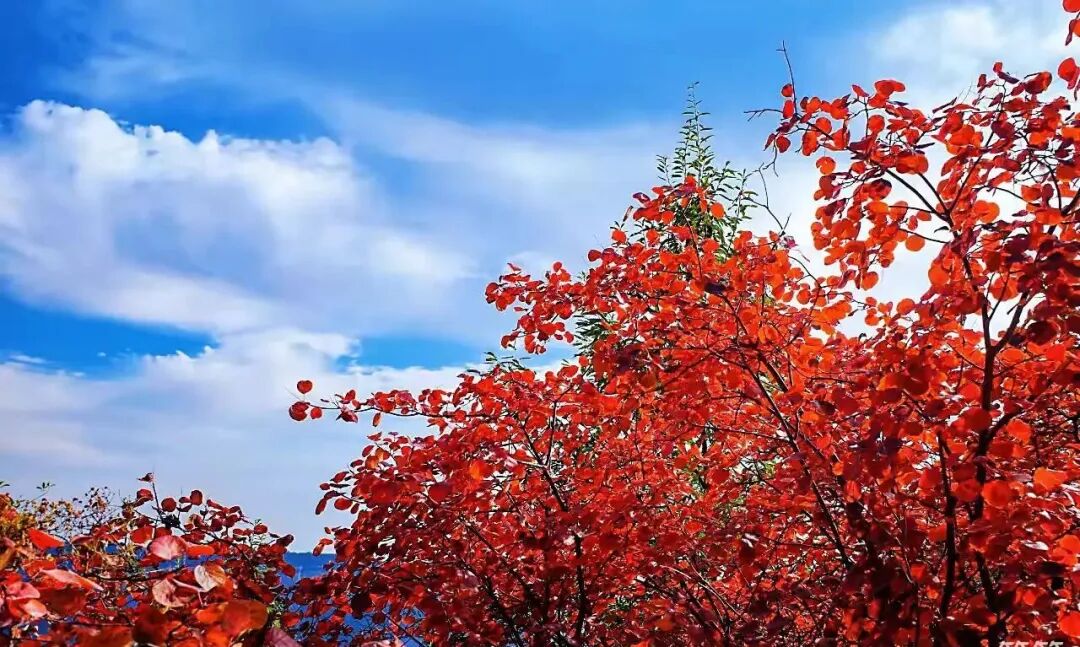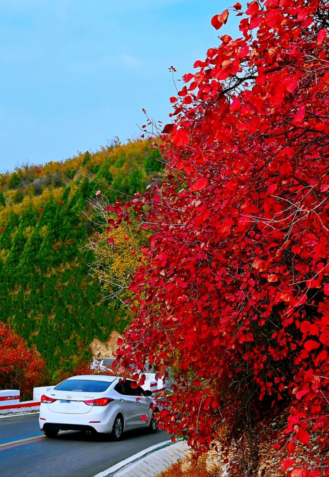 远观,红叶覆山成巨幅红绸,蜿蜒大地,尽显自然雄浑