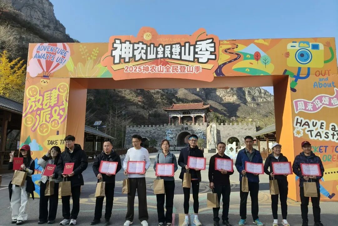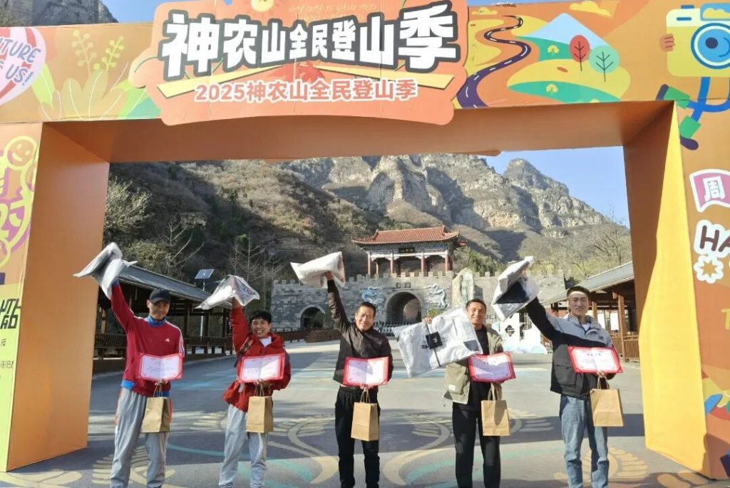 天刚破晓, 神农山游客服务中心就已热闹非凡。 参赛选手陆续抵达, 大家按照指引有序排队, 完成保险购买、身份证核验等流程。 不少选手提前熟悉着比赛路线图, 与同行伙伴交流登山技巧, 脸上满是期待与兴奋。 起点就绪:合影打卡,领取装备 集结完毕后, 选手们或自愿乘坐观光车, 或步行前往云阳寨起点。 到达云阳寨后, 选手们有序领取胸贴, 每个人都在做着最后的热身准备。 大家纷纷举起手机合影留念, 定格下赛前的热血瞬间。 鸣枪开跑:激情冲刺,火力全开 上午10点整, 随着清脆的发令声划破山间宁静, 神农山全民登山季正式开赛! 参赛选手如潮水般冲出起点, 身着各色运动装的身影在山间步道上延展, 大家迈着坚定的步伐, 向着紫金顶终点奋勇进发, 脚步声、加油声交织成最动人的山间旋律。 途中趣景:NPC互动,灵猴添乐 本次登山季的途中堪称“趣味升级”! 行至猕猴苑时, 可爱的猕猴们早已等候在此, 好奇地打量着往来选手, 为紧张的行进增添了几分欢乐, 不少选手停下脚步与这些“山间精灵”合影。 沿途多个核心点位设置了神秘NPC, 选手们纷纷驻足领取专属任务, 一步步解锁神农山的核心美景。 颁奖典礼:好礼相送,实至名归 经过激烈角逐, 首批登山选手抵达紫金顶终点! 现场工作人员第一时间上前祝贺, 为其记录下荣耀瞬间。 随后,选手们陆续登顶, 大家站在山顶俯瞰群山, 欣赏“龙脊长城”的九州奇观, 纷纷拿出手机拍摄全景, 不少人还不忘补拍打卡照, 圆满完成五大点位打卡任务。 颁奖典礼:好礼相送,实至名归 下午2点, 颁奖典礼在云阳寨准时举行, 本次赛事奖项丰厚, 获奖选手们手持奖品合影, 脸上洋溢着自豪的笑容。 圆满落幕 随着颁奖典礼的顺利结束, 本次神农山全民登山季正式落下帷幕。 选手们的奋勇拼搏、 NPC与选手的趣味互动、 山间灵猴的可爱相伴、 还有工作人员的默默付出、 游客们的沿途助威, 都成为了本次活动中最珍贵的记忆。 目前抖音打卡活动仍在进行中, 请参与打卡的选手记得在规定时间内 (即12月6日24:00前) 将抖音作品链接、播放量、点赞量截图等材料 发送至景区指定邮箱snsxcb@163.com, 赢取门票月卡、季卡甚至年卡福利! 神农山的冬日美景仍在延续, 欢迎大家常来探寻, 我们下次再见!