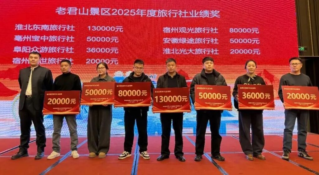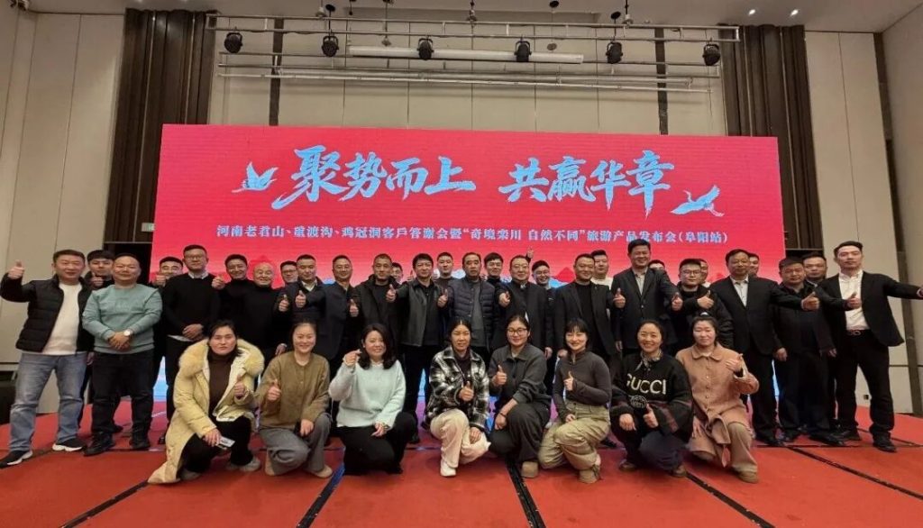 2025年12月23日,“聚势而上 共赢华章”河南老君山、重渡沟、鸡冠洞客户答谢会暨“奇境栾川 自然不同”旅游产品发布会在安徽阜阳成功举办。来自安徽旅游界的百余位旅行社代表、行业嘉宾齐聚一堂,共叙合作情谊,共谋发展新篇。