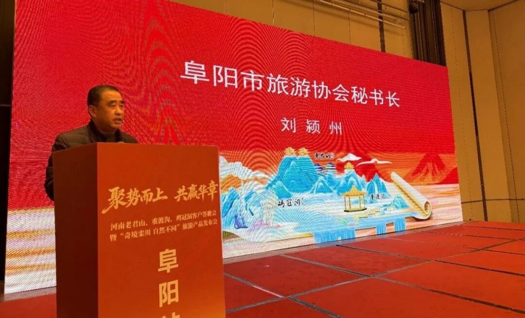 阜阳市旅游协会秘书长刘颍州作为特邀嘉宾致辞,向与会各方表示欢迎,并对豫皖文旅合作表达美好祝愿。