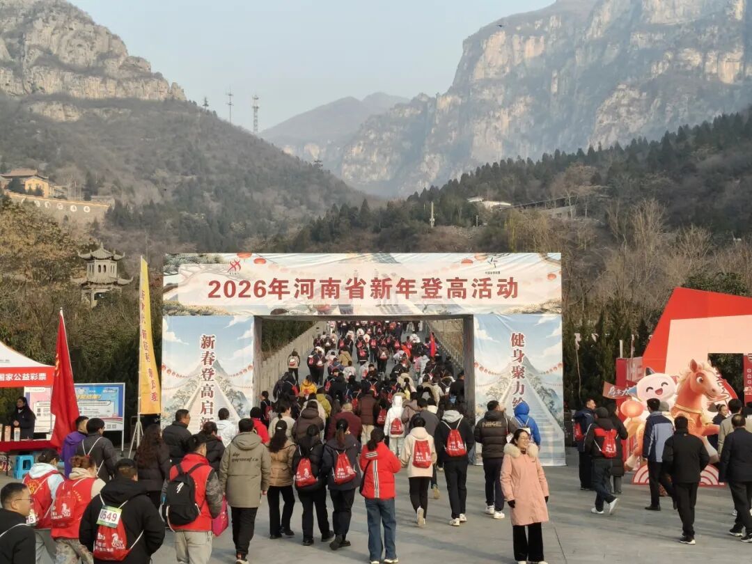 12月30日,2026年河南省新年登高活动(主会场)在神农山景区盛大举行。来自山西、郑州、洛阳、焦作的2000余名健身爱好者齐聚太行山脚下,共同开启了一场别开生面的新年登高之旅,大家以登高望远的传统方式,告别旧岁、迎接新程,用脚步丈量山河壮阔,用激情书写新年序章。