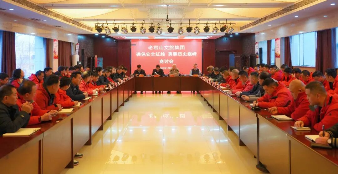 2026年1月5日,老君山文旅集团召开“确保安全红线、勇攀历史高峰”专题商讨会,全体中高层管理人员参会。会议全面总结2025年工作,明确2026年核心目标,并对全年任务进行周密部署,吹响了新一年冲刺的号角。