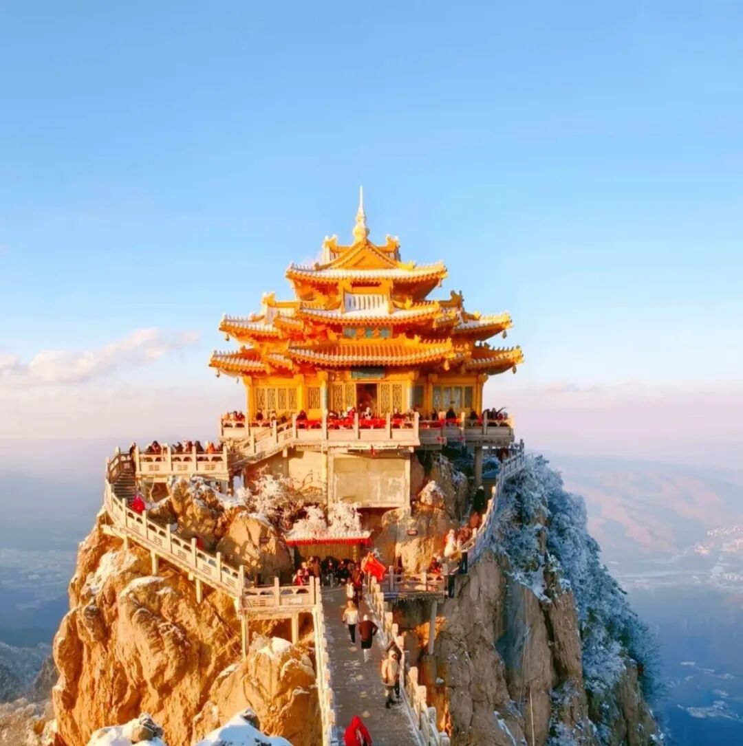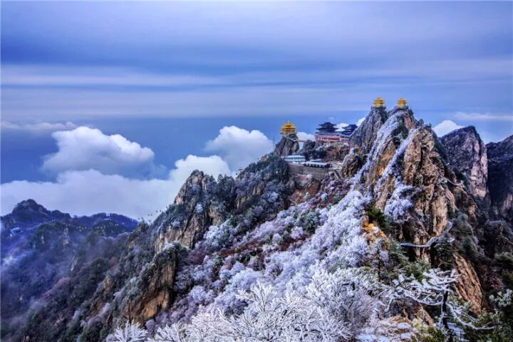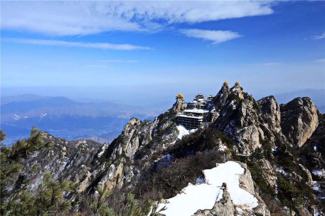 山腰处积雪未融 与裸露的黛色岩体形成天然画卷 山巅金殿在湛蓝背景下更显庄严辉煌 琉璃瓦上冰凌渐消,滴水成珠 行至十里画屏 惊喜发现向阳面冰雪已融 石板路干燥易行 而背阴处仍保留着完整的冰雪秘境 这是冬季老君山独有的“阴阳双景” 小寒过后的第一个晴日 像是冬天特意留出的温柔间隙 冰雪未远,暖阳已至 这短暂而珍贵的平衡时刻 正在老君山的峰峦之间静静上演 温馨提示 1. 昼夜温差较大,请采用“多层穿搭法” 2. 晴日紫外线较强,建议佩戴太阳镜、涂抹防晒霜 3. 景区部分步道仍有暗冰,请务必穿戴防滑鞋套