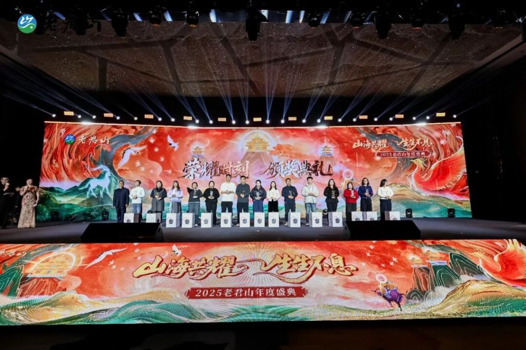 仪式《光树生息》将本次盛典推向高潮。现场嘉宾共同拿起纪念牌,为象征生命与未来的光之树注入力量,寓意着老君山与合作伙伴们将携手共进,生生不息。