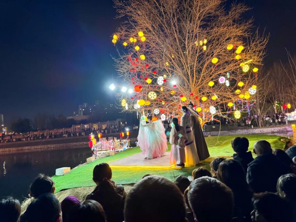 正月初一夜晚,淇县城区华灯璀璨、年味正浓。朝歌老街、沬水廊桥两地同步开启“封神盛宴”,实景演艺、民俗互动、花船巡游轮番登场,沉浸式殷商文化体验让游客尽享新春欢乐。