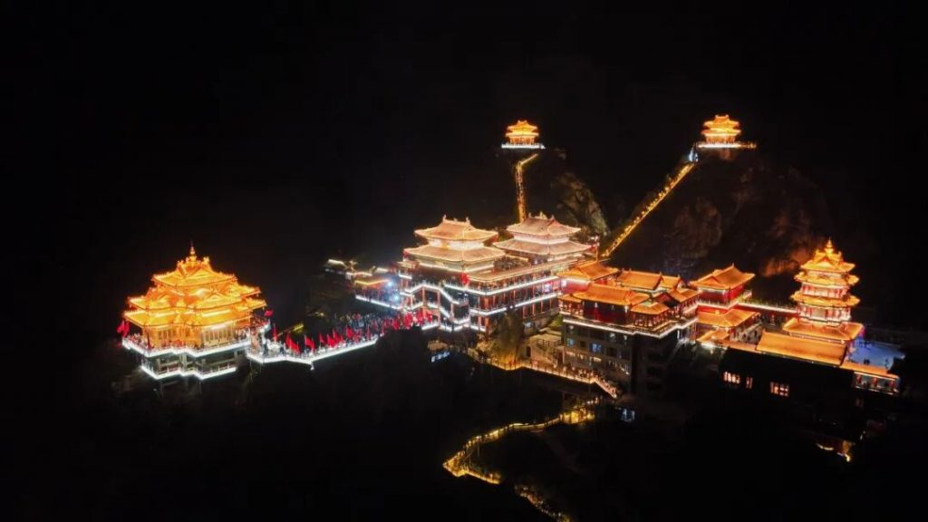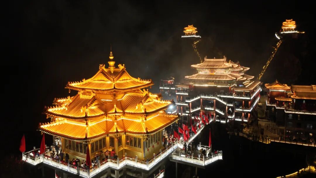 今年春节假期,老君山景区灯火璀璨,流光溢彩。夜幕降临,金殿建筑群在灯光映照下熠熠生辉,仿佛天宫降临人间。