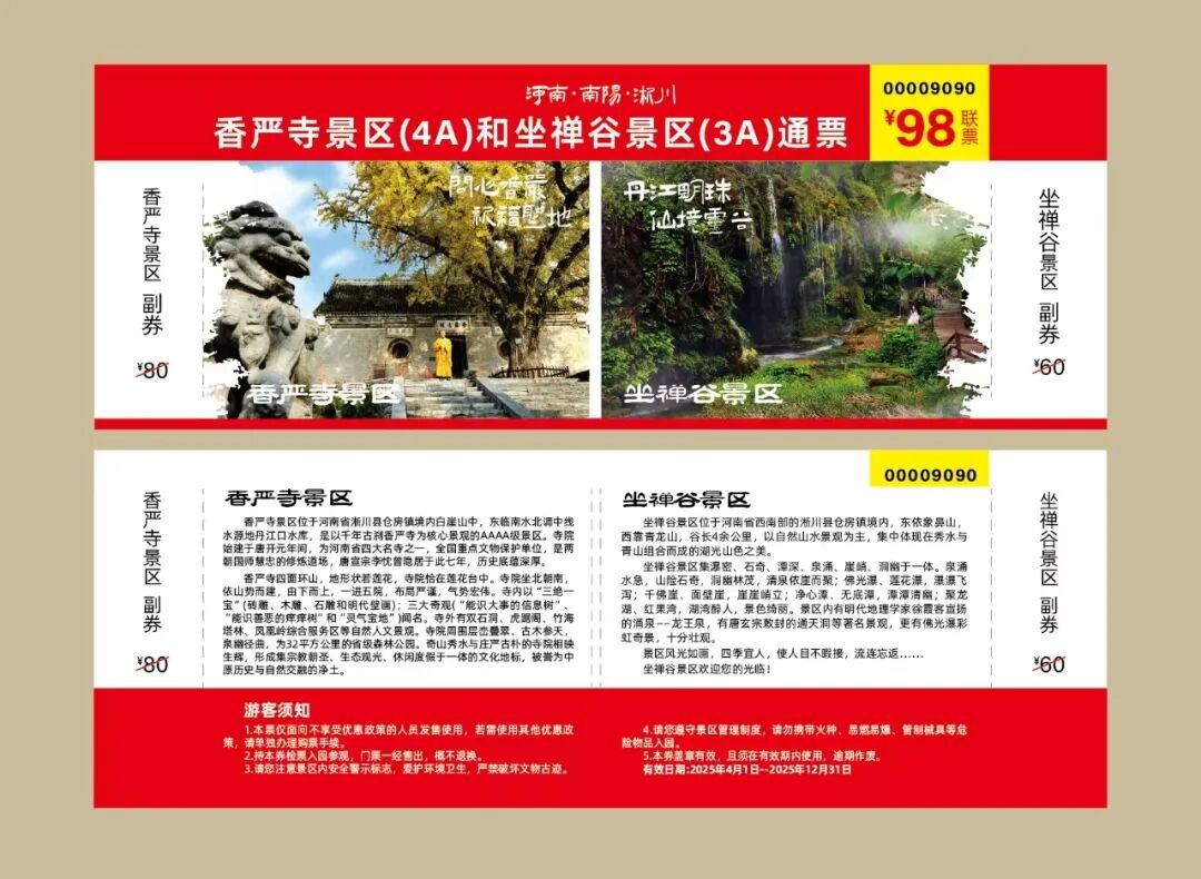 140元双景区通票者立省42元 ▌联票价格:98元/人(原价140元,含香严寺景区80元+坐禅谷景区60元) ▌购票渠道:导航搜索香严寺山门,即可在香严寺景区山门,游客服务中心购买两景区通票 智慧开悟,经藏润心:书写过程加深对哲理的理解,拓展思维格局。在古刹禅香中静虑,突破固有思考模式,启悟生命智慧。