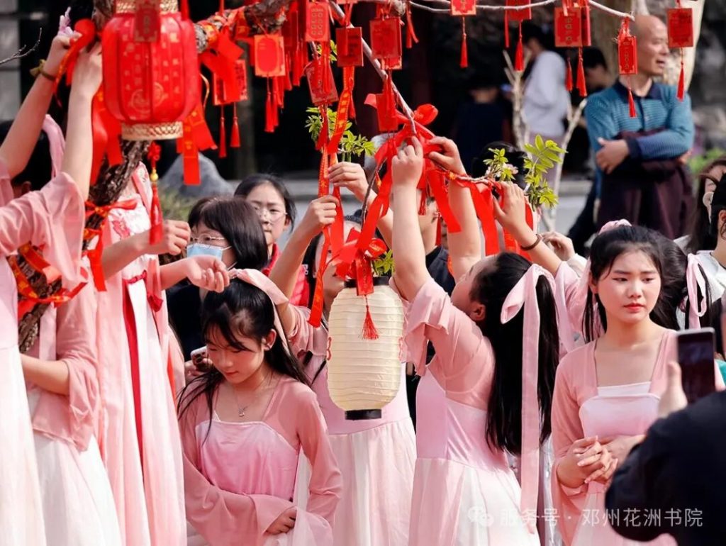 “通过举办一年一度的花朝节,集中展示邓州丰富的文化旅游资源,为市民游客打造一场沉浸式的繁花盛宴,共同感受春天的气息和传统文化的魅力。” 花洲书院景区相关负责人表示。