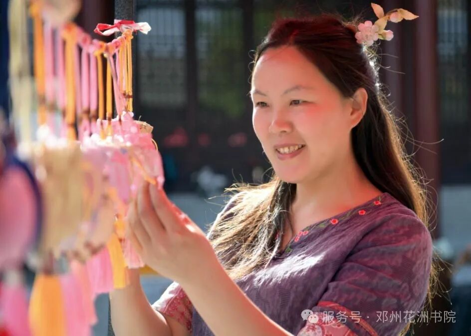传统文化焕发活力。在“五一”期间,非遗展演展示走进景区。书院依托非遗空间集中展示糖画、艾草香包,古风簪花,艾草香包制作体验等本土非遗技艺,让游客在游览中感受传统手工艺的独特技艺和邓州深厚的文化底蕴。
