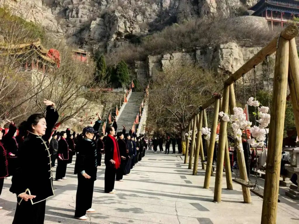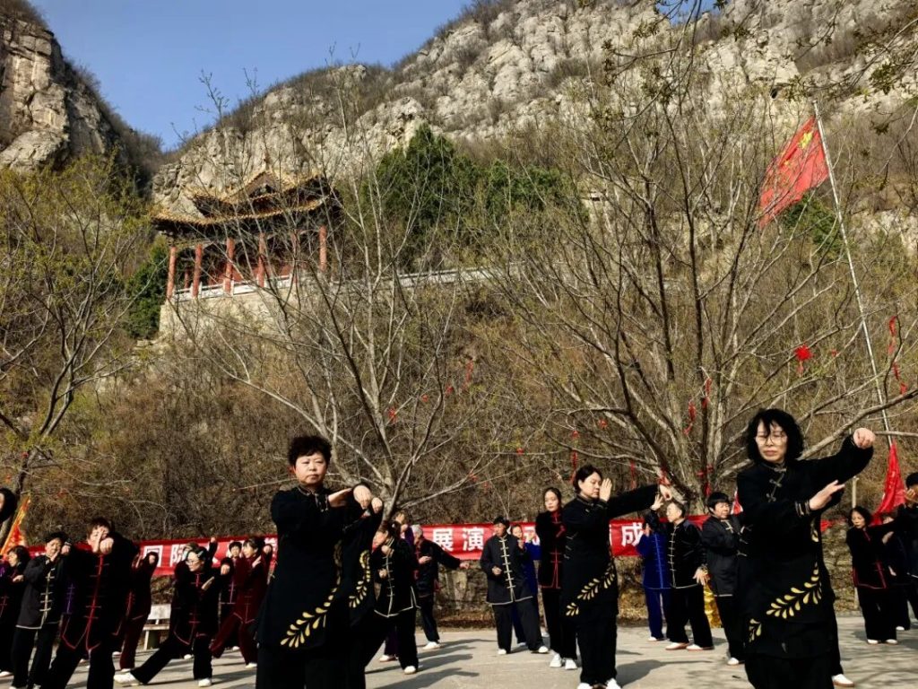 朝阳山景区 太极拳展演开幕 春风浩荡拂朝歌,朝阳映翠绽芳华。3月21日,我们迎来首个“国际太极拳日”,这一属于太极文化的历史性时刻,让中华传统武术瑰宝绽放出耀眼的全球光芒。 在这充满生机与活力的阳春三月,淇县朝阳山景区内,太极神韵流转,健康风潮涌动,“太极同行,健康淇县”大型展演活动盛大启幕,八方宾朋、太极爱好者齐聚于此,共赏太极之美,共赴健康之约。 太极展演 一招一式尽显国风神韵 展演现场,各位太极爱好者精神抖擞、意气风发,身着统一太极服,身姿挺拔、神采奕奕,尽显太极人的精气神。 从行云流水的八段锦,到简洁雅致的24式太极拳;从舒展大气的42式太极拳,到韵味十足的老架一路;从刚柔相济的56式竞赛太极拳,到灵动飘逸的32式太极剑,再到精妙绝伦的推手太极与个人、团队特色展演,一招一式沉稳舒展,一举一动韵味悠长。 体旅融合 朝阳山赋能健康建设 以拳聚力 共赴美好健康未来