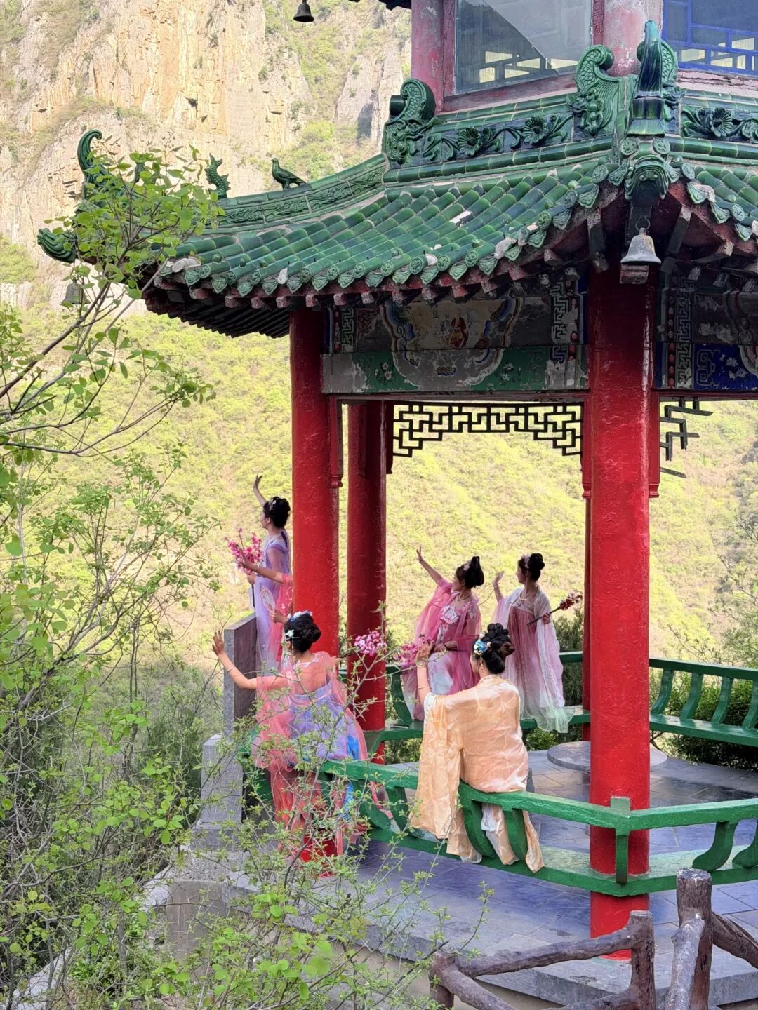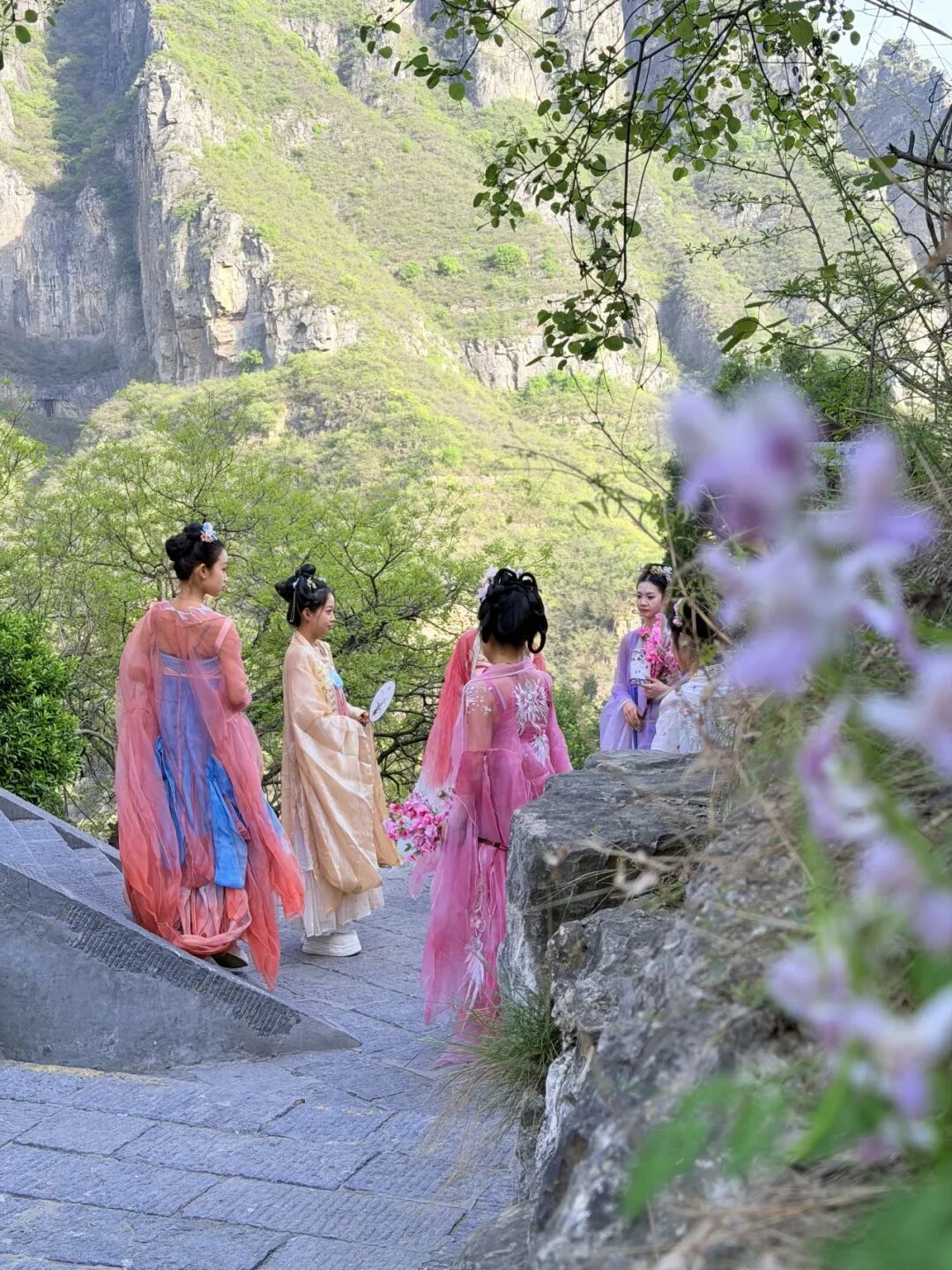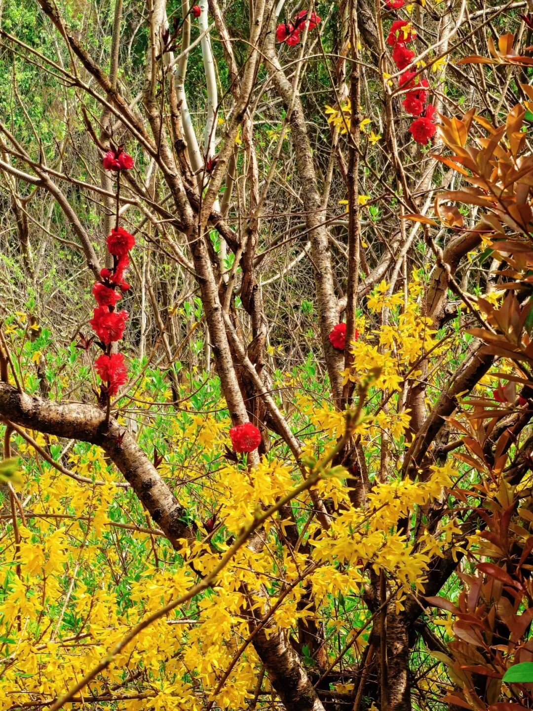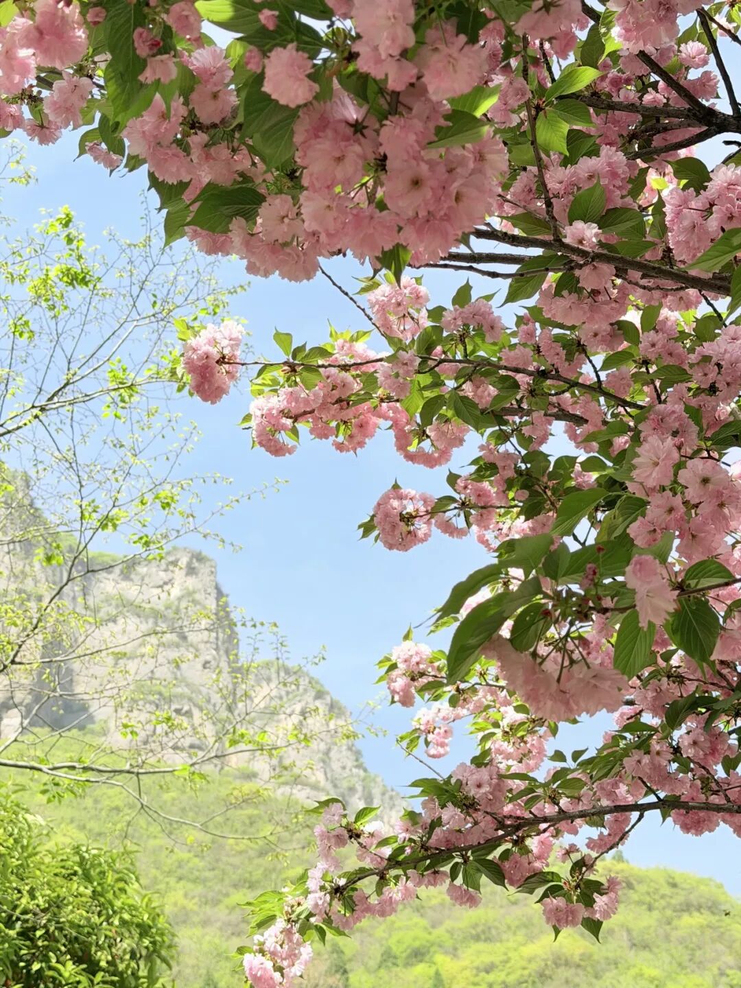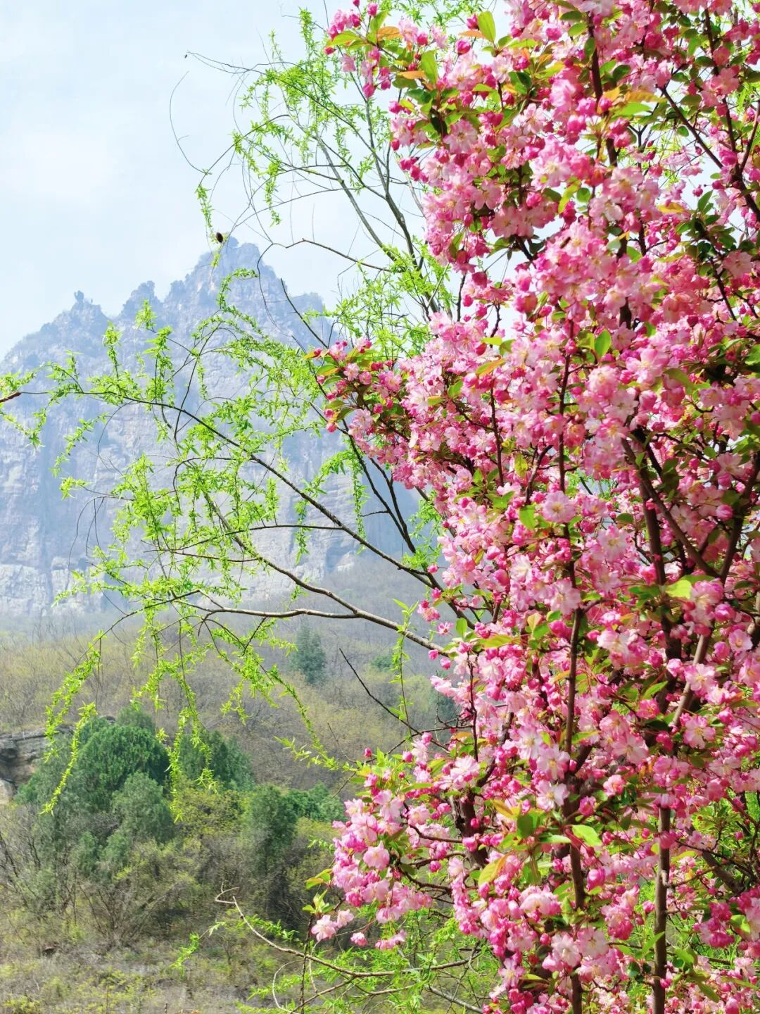海棠缀枝、桃花凝香、连翘漫坡,粉黄相间的花海与青峦叠嶂相映成趣,随手一拍都是氛围感大片,出片率直接拉满。