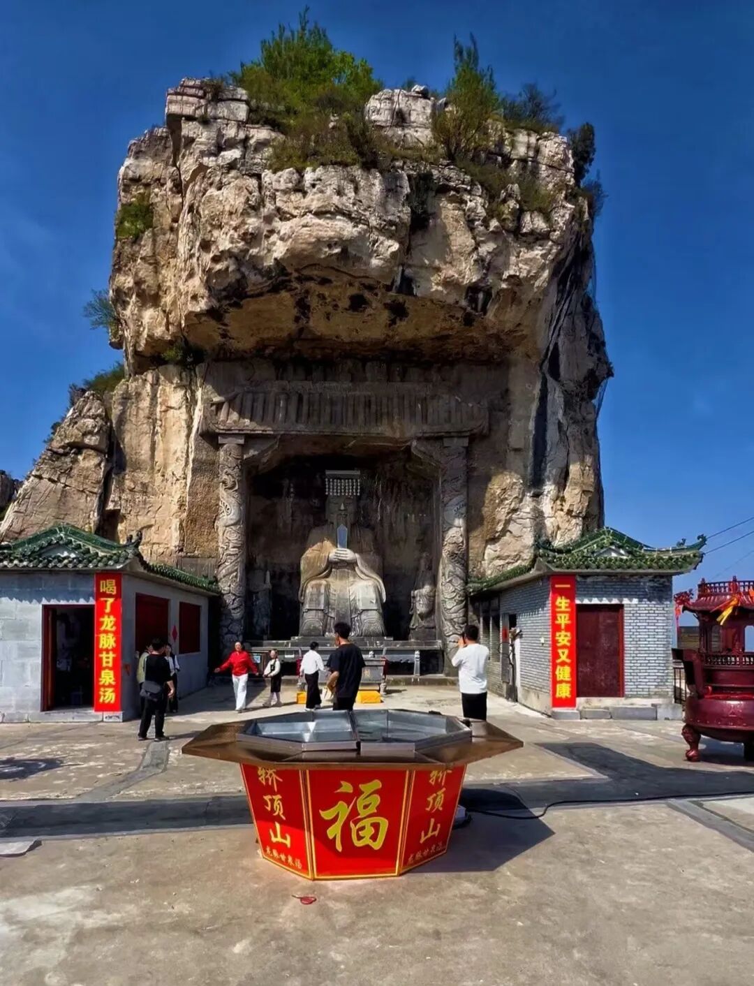 轿顶山起势大鼓:鼓面直径1.8米,在轿顶山主峰位置 五一假期,不妨暂别城市的喧嚣,奔赴新乡轿顶山,让壮阔山河见证你的登顶之旅。