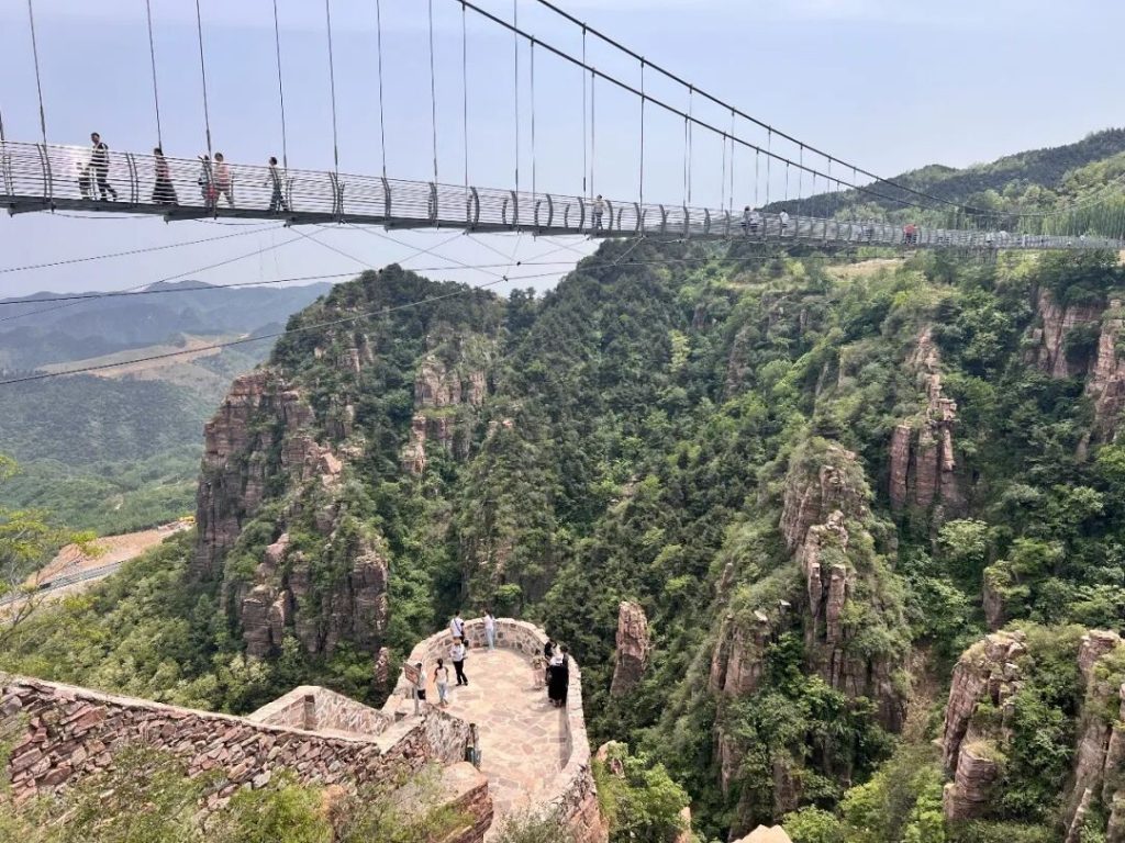 •轿顶山鸿运玻璃桥:318米长的“鸿运玻璃桥”悬于338米高的红石绝壁之上,透明桥面让脚下峡谷景致尽收眼底,晴天时云海环绕,仿似漫步云端。